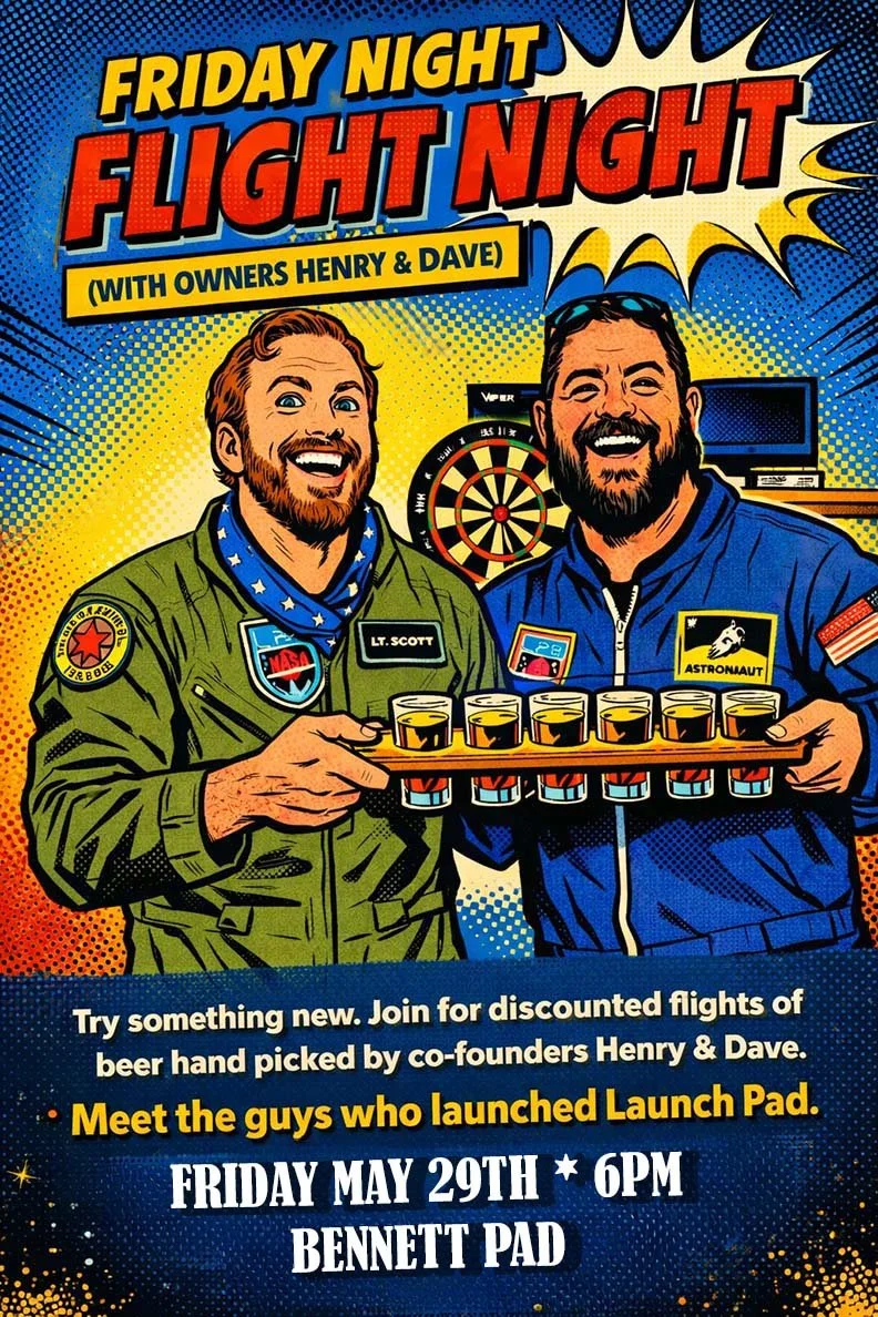 Join us for Friday Night Flight Night and try discounted beer flights hand-picked by Launch Pad co-founders Henry & Dave. Hang out, sip something new, and meet the guys who launched Launch Pad from the ground up.