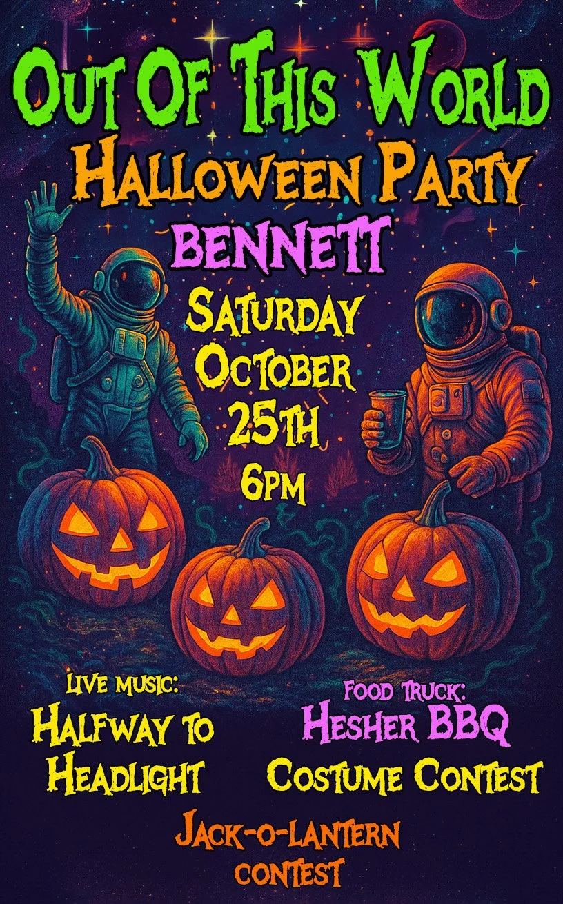 The Bennett crew is throwing their own haunted bash! Hang out with Halfway to Headlight, savor Haunted Confections by Milly’s Café, and feast on BBQ from Hesher BBQ. Don’t miss our Jack-O-Lantern Competition and spooky Costume Contest—show off your carving skills and your best Halloween look!