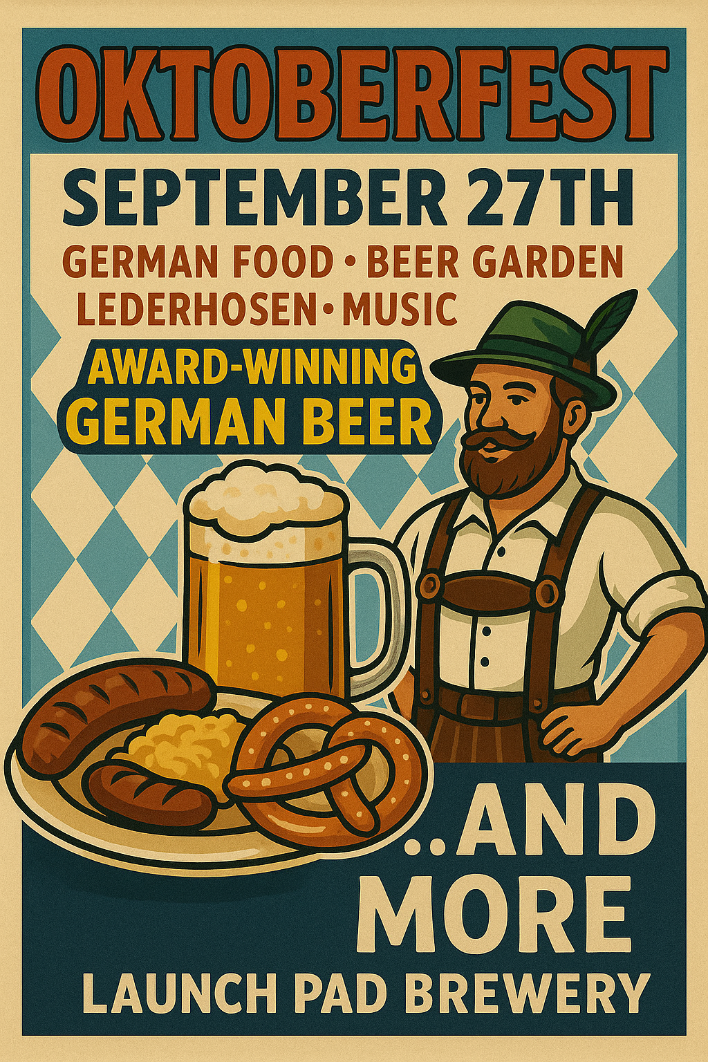 Oktoberfest at Launch Pad Brewery Join us for our annual celebration of all things German beer! We’ll be pouring a stellar lineup of craft-brewed German styles, including our World Beer Cup–winning Falltoberfest-Märzen. Enjoy the festivities with your very own custom Launch Pad stein, indulge in authentic German food from Rustic Nomads, and test your strength in our lively stein-holding competitions. Soak in the festive atmosphere in our beer garden while raising a glass to one of our favorite traditions of the year.